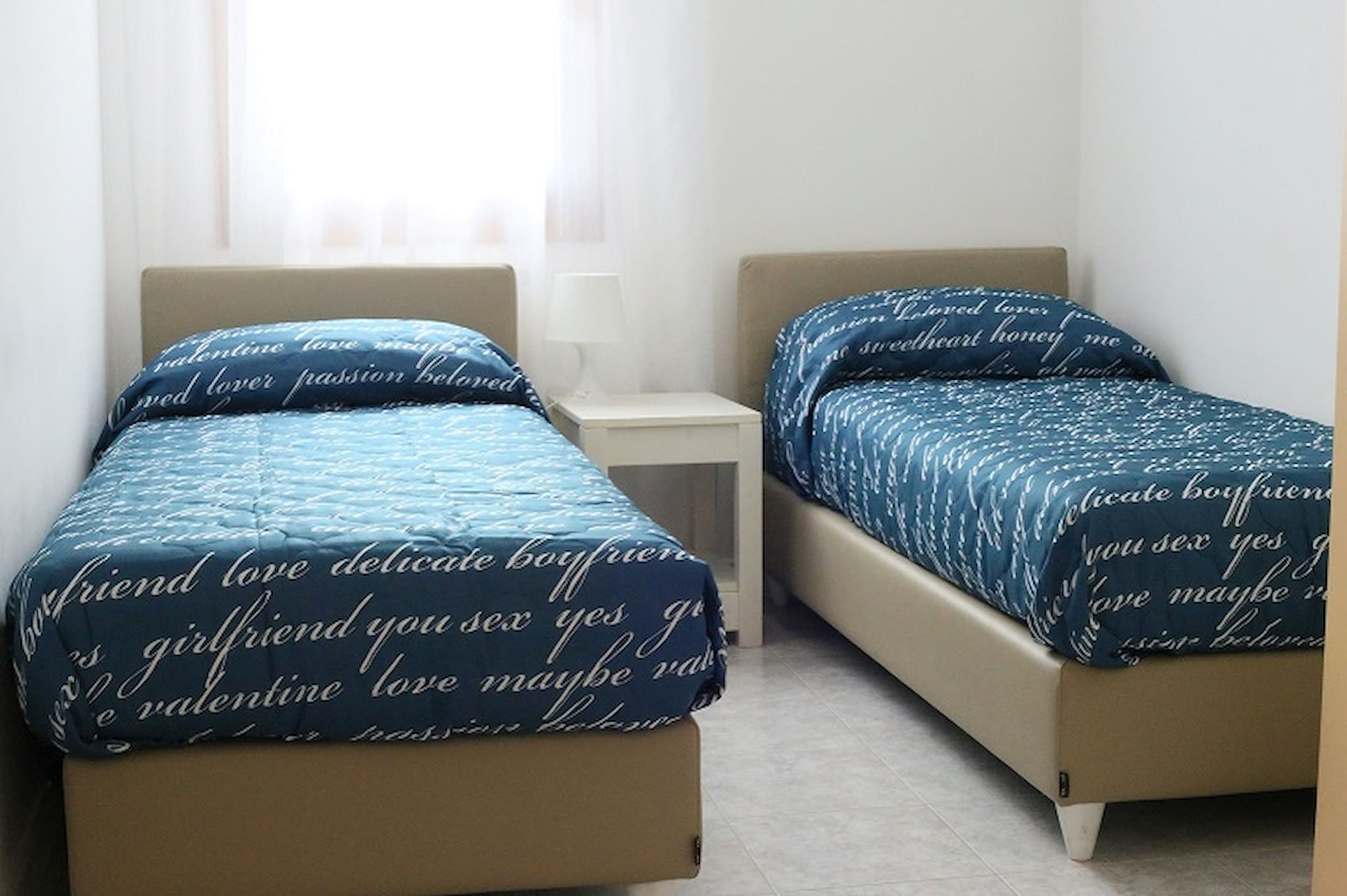 parcheggio privato esterno, soggiorno con balcone, camera matrimoniale e camera singola con due letti. Bagno con doccia e lavatrice
