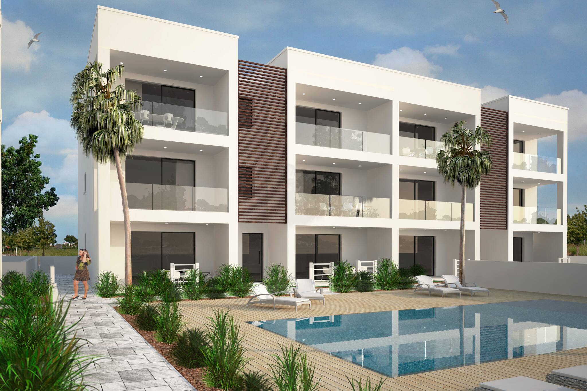 Appartamento di nuova costruzione a 150mt della spiaggia in un edificio composto da 12 unità con piscina e posto auto di proprietà.