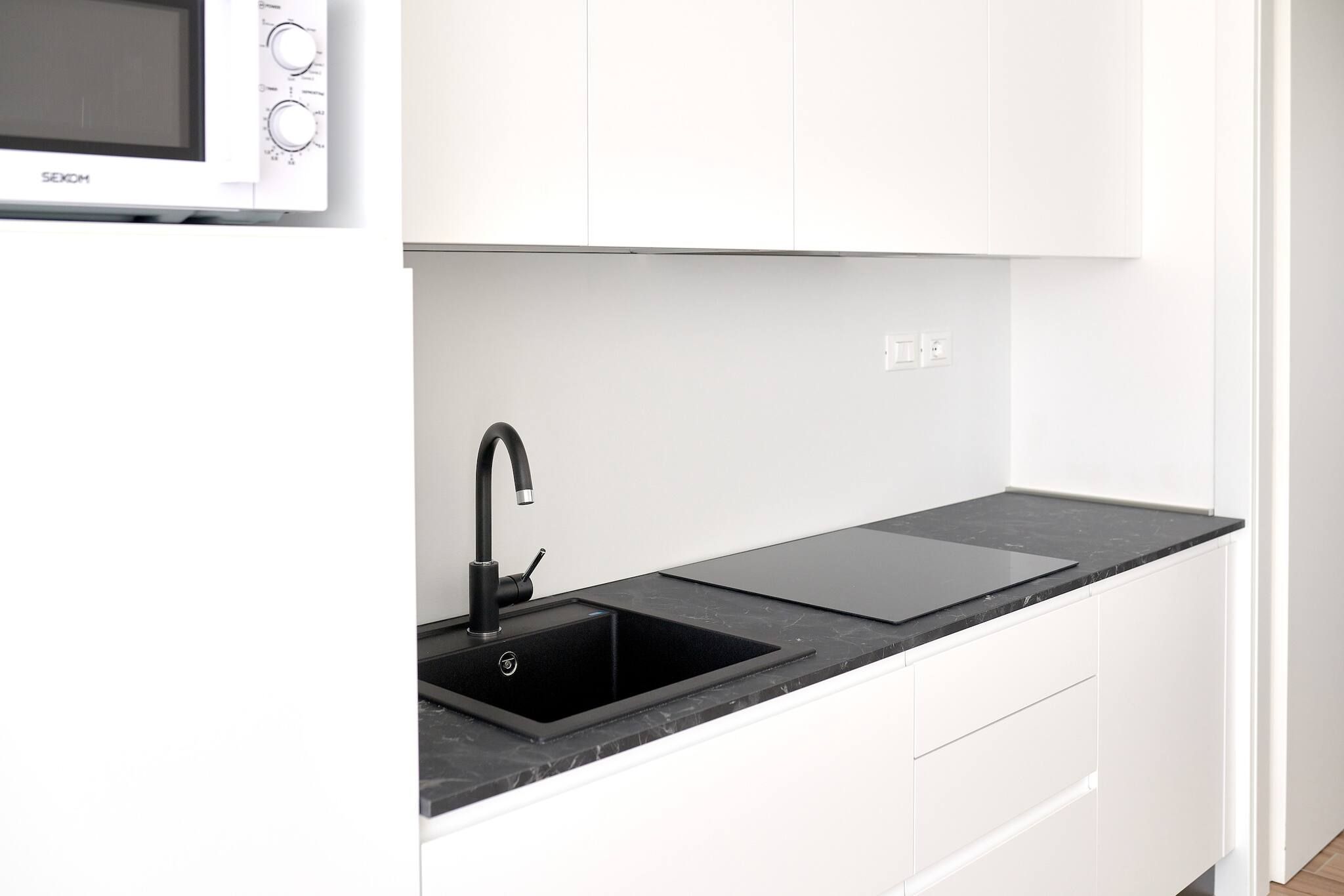 Cucina nuovissima con piano ad induzione, forno a micronde e lavastoviglie. Il soggiorno con angolo cucina si affaccia ad un terrazzo abitabile per poter far colazone o pranzare all'esterno il tutto con vista piscina.
