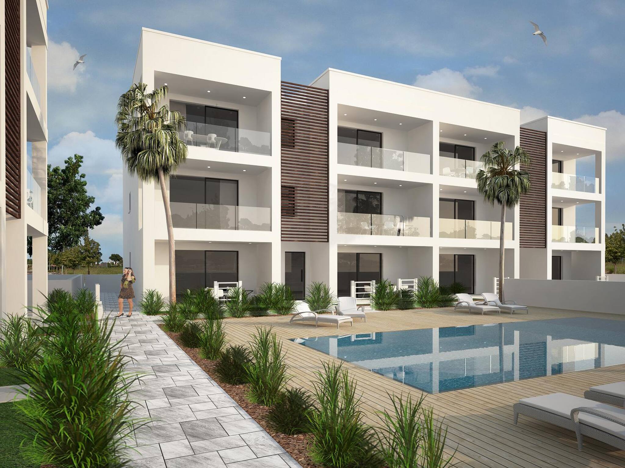 Neugebaute Wohnung 150 m vom Strand entfernt in einem Gebäude mit 12 Einheiten, mit Swimmingpool und eigenem Parkplatz.